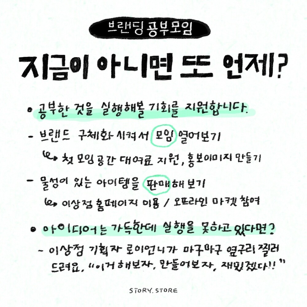 브랜딩 모임에 참여하신 분들이 공부에 그치지 않고 자그마한 실행이라도 하시기를